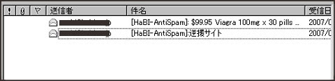 HaBIのメールサーバの段階で迷惑メールを判定し識別できる形にして受信します。 Subject(件名)に「[HaBI-AntiSpam]:」の文字が付加されて届くようになります。(※メールソフト画面例参照) OutlookExpressのメールルール等を利用することで自動的にごみ箱に捨てることができます。元のメールが完全に消えるのではありませんので万一誤認識しても救い出すことが可能です。 全ての迷惑メール対策に言える事ですが完全な検出駆除は保証されませんでご了承ください。迷惑メール駆除エンジンはProscan-AntiVirusを使用しています。