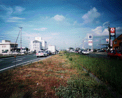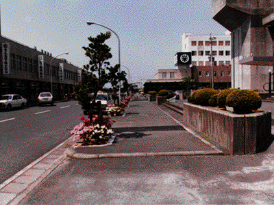 <浜松卸商団地>のある浜松卸本町は、静岡県浜松市の南部にあり、JR浜松駅から直接距離4Km、東名高速道路浜松インターチェンジから12Km。国道1号線の両側にあります。入口は「卸」の広告看板。すぐ東南方向には、浜松凧揚げまつり会場の中田島砂丘があります。団地内は街区式の卸売業店舗等施設が棟を連ね、中央部には利便施設として、本町ビル(ビジネスホテルやレストラン食堂喫茶、歯科診療所、卸本町郵便局など)や浜松信用金庫、組合事務所などがあって、緑の本町公園や街路樹と共に、うるおいのある街区を形成しています。