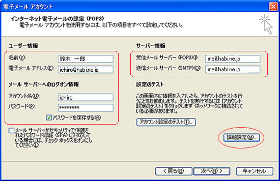 赤枠の項目の各項目を入力します。 入力が完了しましたら、[詳細設定] をクリックします。