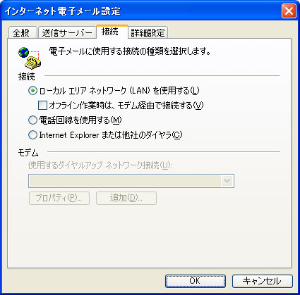 「オフライン作業時は、モデム経由で接続する 」チェックボックスは、通常はチェックしません。