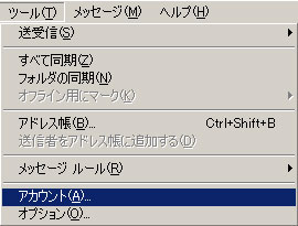 続いて、メニューバー「ツール」→「アカウント」をクリックします。