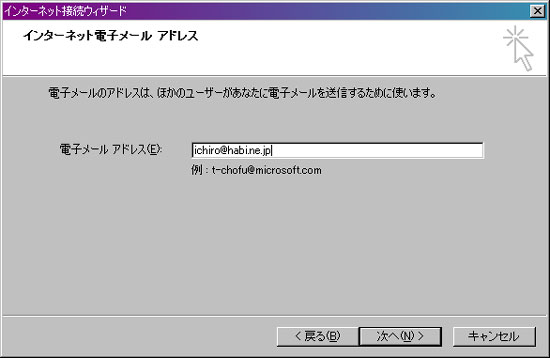 [表示名]は個人名、会社名など任意の名前を入力し、[次へ]をクリックします。ここで入力した表示名は、メール送信時に送信者名として表示されます。