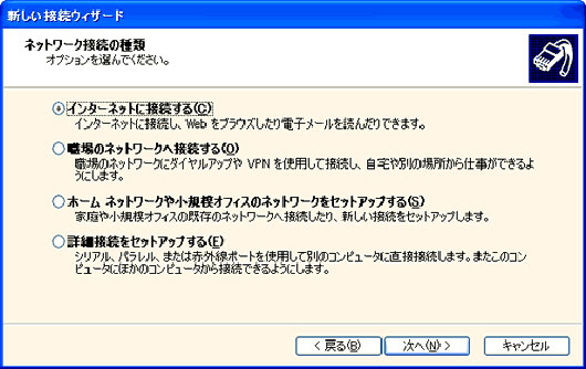 [インターネットに接続する]を選択し、[次へ]をクリックします。