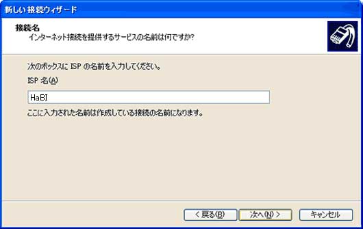 [ISP名]に任意の名前を入力します。例としてここでは[HaBI]入力しました。