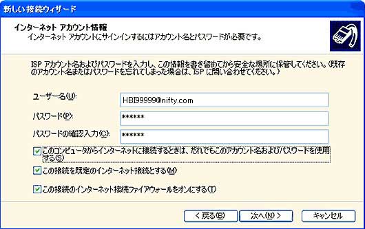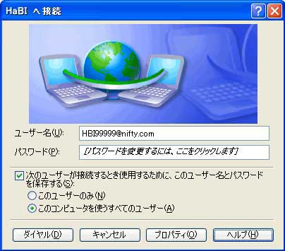 このコンピュータからインターネット接続するときは、だれでもこのアカウント名およびパスワードを使用する
